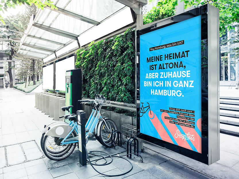 We created a local OOH campaign for Swapfiets Hamburg to maximise awareness of the Swapfiets bike subscription while being extremely cost effective. The goal: increase demand and WoM among millennials and Gen Z. Explain the added value of a Swapfiets subscription: flexible, fast, service-oriented and eco-friendly.